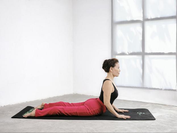 Nằm sấp trên sàn, hai chân duỗi thẳng ra sau, úp mu bàn chân xuống sàn. Lòng bàn tay áp xuống sàn và áp vào thân người ở vị trí ngang ngực. Dùng lực của bàn tay nâng phần trên cơ thể lên nhưng không duỗi thẳng cánh tay mà giữ cánh tay hơi cong. Giữ hông cố định và thả lỏng thắt lưng . Giữ tư thế từ 15-30 giây.