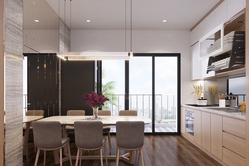 Một không gian bếp rộng rãi và thông thoáng giúp tiếp nhận nhiều ánh sáng tự nhiên, mang lại cảm giác ấm cúng và đẩy lùi những yếu tố không lành mạnh ra khỏi ngôi nhà.