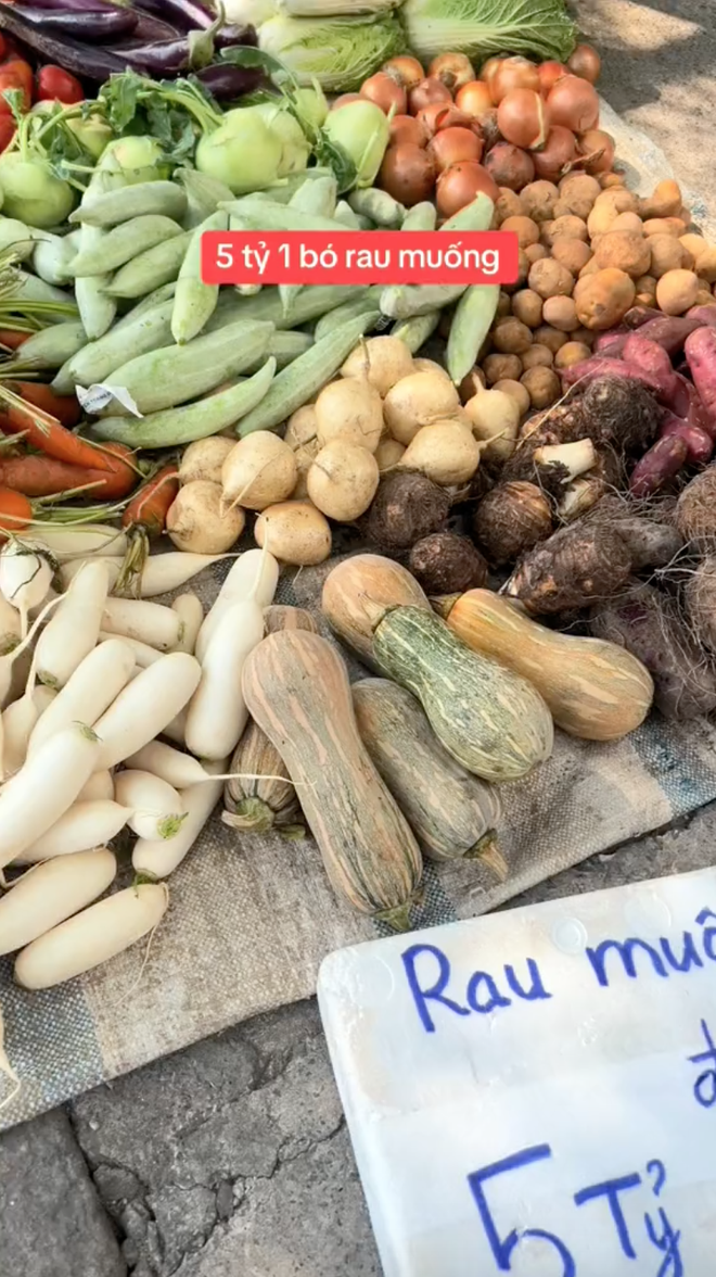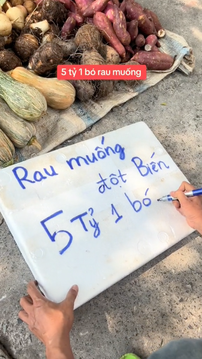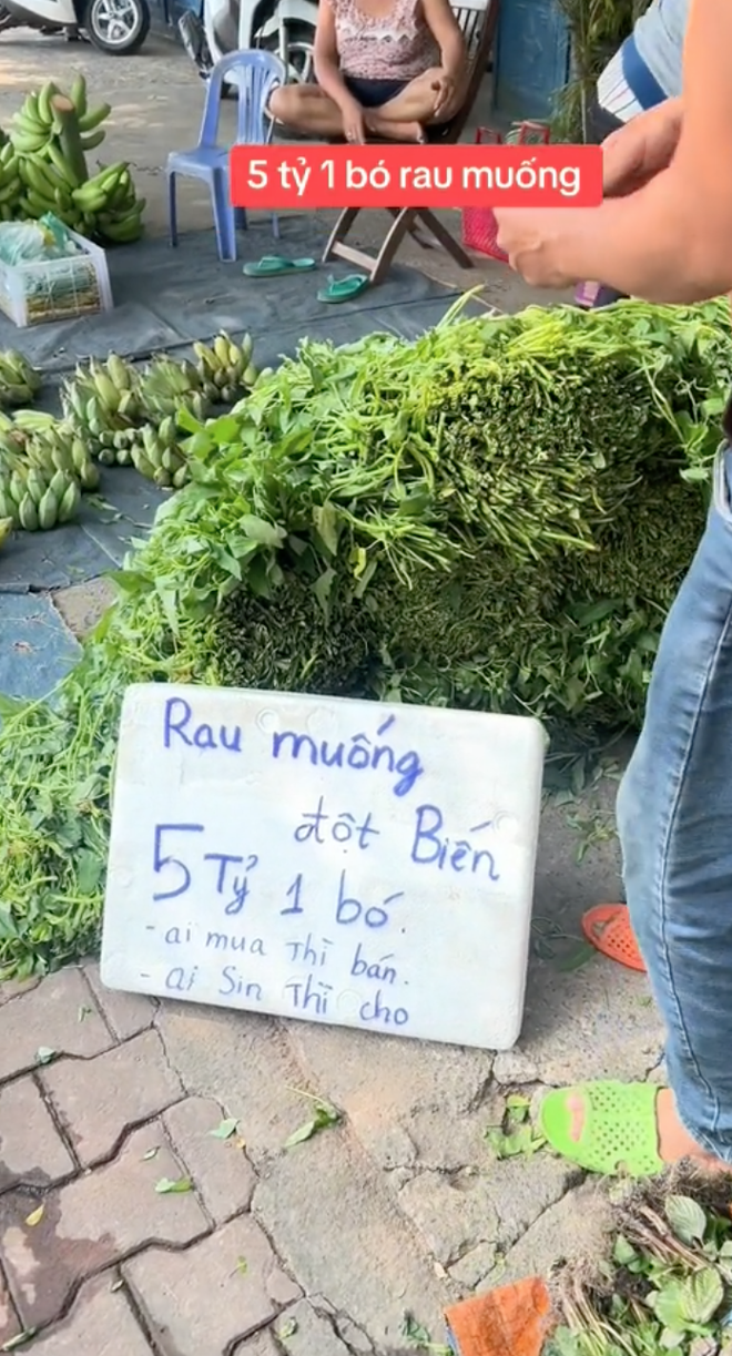 Cụ thể, trong 1 clip đang viral trên TikTok, một anh bán rau đã đề biển 5 tỷ cho một bó rau muống đột biến khiến ai cũng trầm trồ.