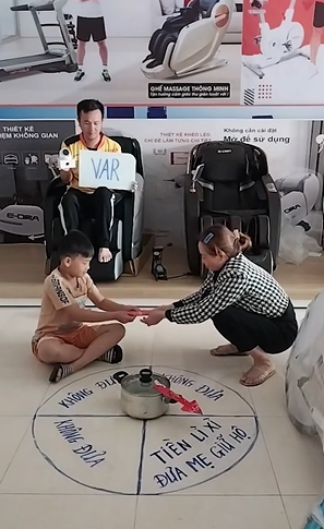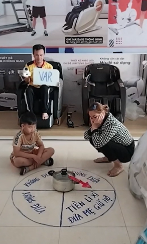 Dù đã "cầu cứu" VAR nhưng có vẻ kết quả không có gì thay đổi. Cậu bé cuối cùng phải hai tay dâng "thu nhập" mình kiếm được trong những ngày Tết cho mẹ rồi cười trừ đứng dậy. "Quân tử nhất ngôn" dám chơi dám chịu, đến nước này thì không chịu cũng phải chịu chứ biết làm sao.