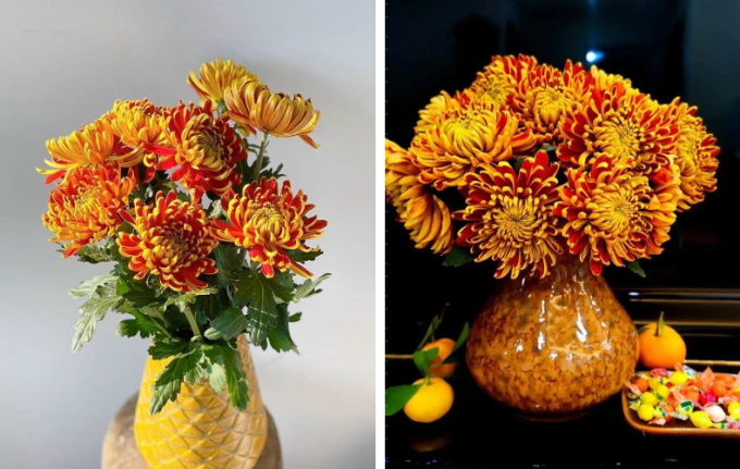 Thế nhưng, nhiều năm trở lại đây, các chị em thông thái thường tìm mua loại hoa cúc đậm màu sắc truyền thống, mang hơi hướng "vintage", hoài cổ, đó là hoa cúc mẫu đơn hoàng gia. Giống hoa này không chỉ sang trọng, đẹp, chưng bàn thờ tạo vẻ nghiêm trang, ấm cúng và chúng cũng rất bền.