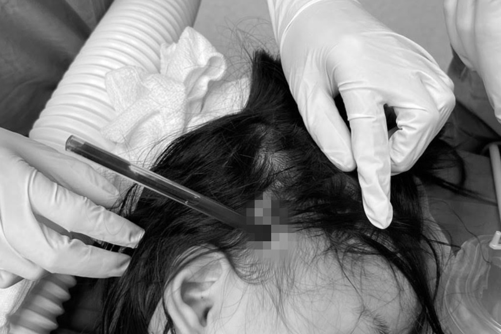 Ngay lập tức, bệnh nhi được đưa vào bệnh viện cấp cứu. Qua thăm khám hình ảnh, bác sĩ ghi nhận, bé gái bị nứt bản sọ ngoài trán phải. Ngay lập tức, bệnh nhi đã được chuyển mổ cấp cứu. Các bác sĩ đã lấy ra thành công cây bút bi đâm thấu xương sọ. Bệnh nhi đã may mắn vì dị vật không gây tổn thương động mạch.