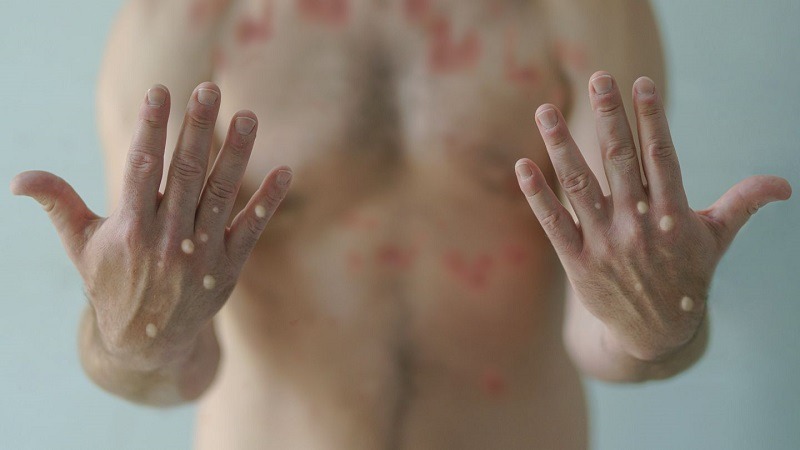 Ngày 22/9, bệnh nhân đến khám tại Bệnh viện Da liễu TP HCM, ghi nhận hết sốt, còn ngứa, thêm các triệu chứng như nổi hạch bẹn, phát ban dạng mủ tại vùng mặt, niêm mạc miệng, lòng bàn tay, chân, cơ quan sinh dục. Nghi ngờ bệnh nhân nhiễm đậu mùa khỉ, Bệnh viện Da liễu TP HCM đã lấy mẫu gửi Viện Pasteur TP HCM và cho kết quả dương tính với virus đậu mùa khỉ.
