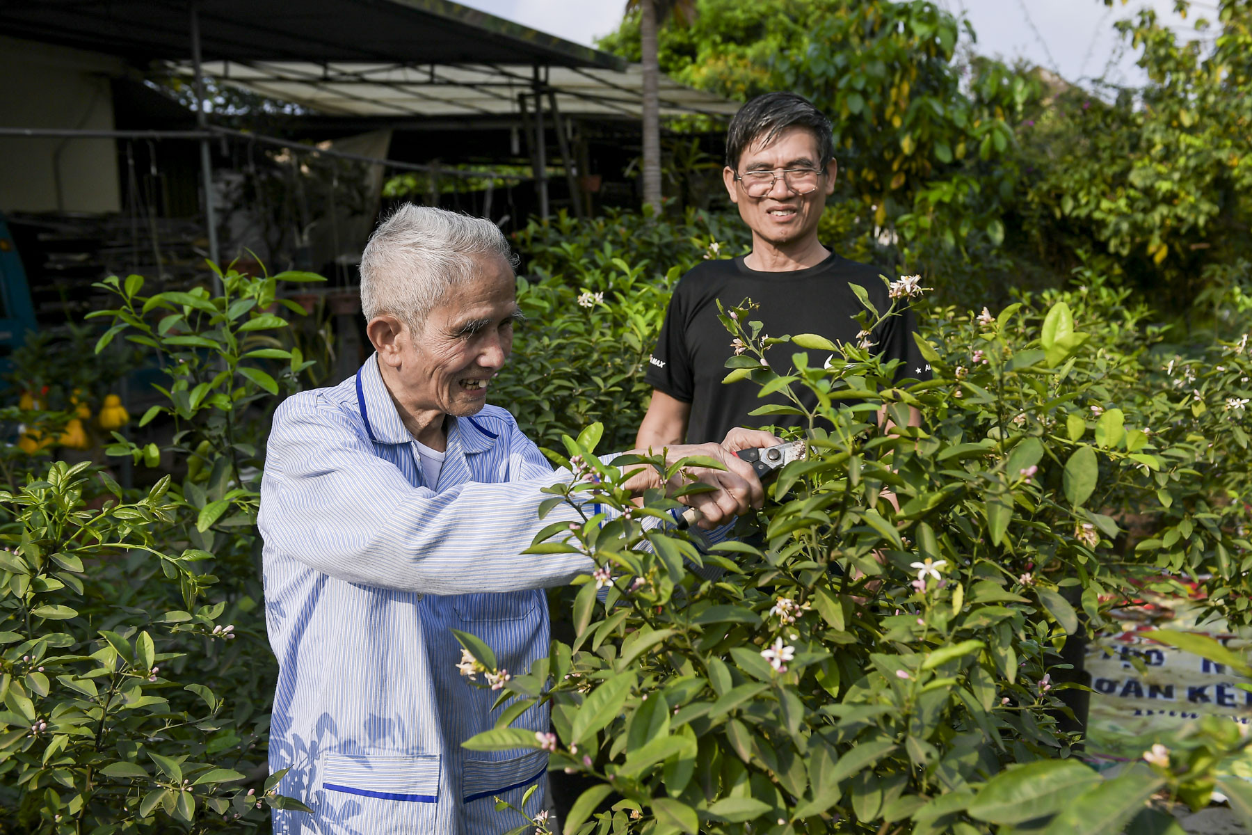 Năm nay đã 95 tuổi, nhưng ngày nào cụ Hoàn cũng ra vườn tỉa cây.