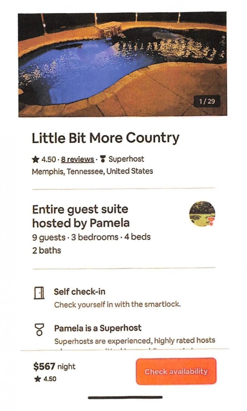 Trước đó, căn nhà cho thuê của Pamela Fohler được quảng cáo trên AirBnb là có sức chứa lên tới 9 người. Chủ nhà đã đặt ra các nguyên tắc như: cấm hút thuốc hoặc vaping, khách không đăng ký trước, đỗ xe trước cửa gara, gây ồn ào quá mức, khỏa thân khi bơi hoặc đi tiểu trong hồ bơi.