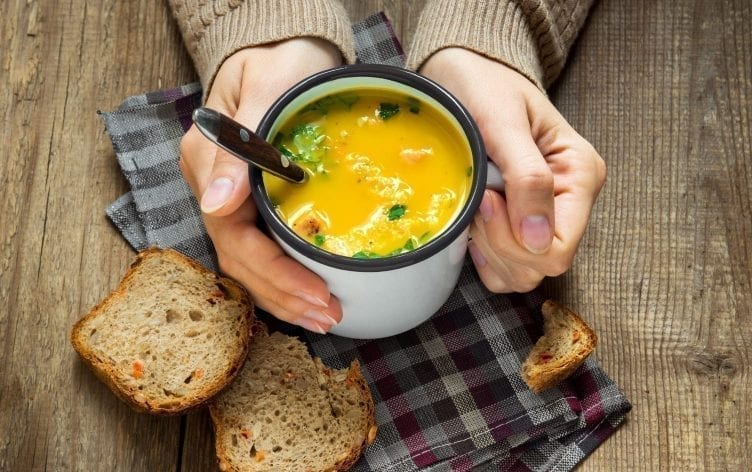 Những ngày trời lạnh, cần duy trì trạng thái hydrat hóa tốt, uống đủ nước. Để giúp khởi động cả ngày, hãy uống đồ uống nóng (nước, sữa và trà) và thức ăn nóng (ví dụ như súp, cháo, phở). Ăn ít nhất một bữa ăn nóng mỗi ngày. Tránh đồ uống có cồn và cố gắng ăn ít nhất năm phần trái cây và rau quả hàng ngày.