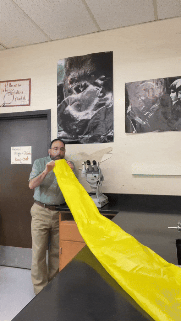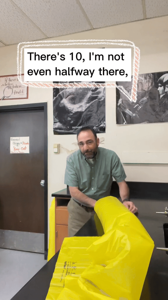 Giải thích cho hiện tượng này, người giáo viên nói nó giống như định luật Bernoulli trong vật lý. Khi ông thổi, không khí xungh quanh cũng sẽ di chuyển theo vào vùng có áp suất thấp. Bởi vậy, ở cách đưa miệng ra xa túi hơn, chỉ cần thổi 1 hơi duy nhất là toàn bộ bịch nilon đã căng phồng bởi khí bên trong.