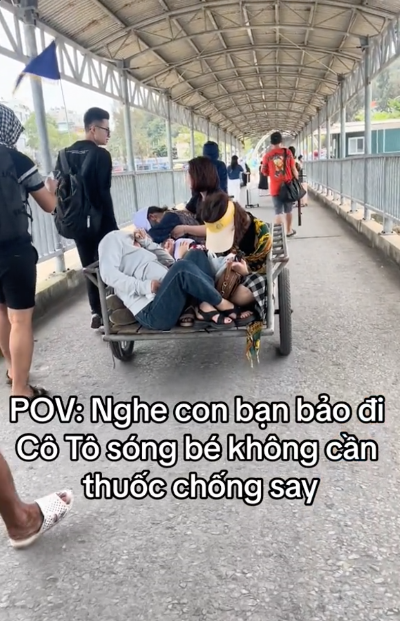 Như mới đây, đoạn clip ghi lại khung cảnh một số du khách đi tới đảo Cô Tô đã "say ngất ngây" bởi không chịu được cảnh dập dềnh sóng nước. Và sau một hành trình dài từ đất liền ra đảo, các du khách này đã không thể đứng vững, vì thế đoàn phải nhờ một chiếc xe để họ ngồi lên đó và... kéo đi.