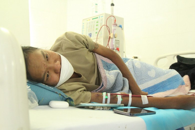 Chỉ vào những nốt u cục trên tay, Minh tâm sự: “Bênh tật đã tàn phá cơ thể em, lấy hết những gì em có. Nhưng em cũng chỉ biết tự trách mình, vì chủ quan và ham kiếm tiền khi còn trẻ nên giờ em phải chạy thận suốt đời”.