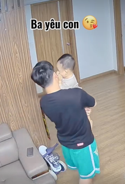 Khung cảnh phía sau là khi ông bố đã ôm được con vào lòng, dỗ dành đầy yêu thương. Có lẽ sau vài lần ôm ấp, chơi với con, cậu bé đã chịu "mở lòng" với bố. Nhiều người chia sẻ rằng trẻ nhỏ biết nhiều hơn những gì người lớn tưởng tượng, dù không nói ra nhưng chắc chắn con sẽ gần gũi, yêu thương với ai dành nhiều tình cảm cho con.