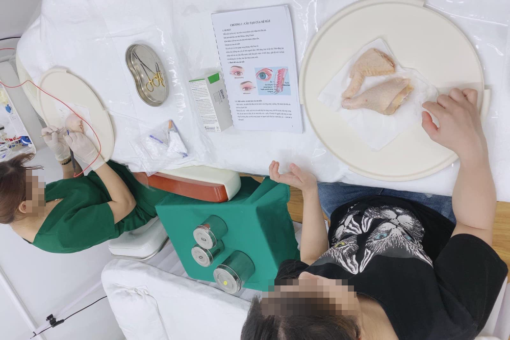 Vị chuyên gia này chia sẻ: "Có những lớp đào tạo bác sĩ thẩm mỹ sử dụng đùi gà, cánh gà cắt tỉa học vài ba buổi rồi tự phong mình là chuyên gia thẩm mỹ. Để trở thành một bác sĩ ngoại khoa, có thể cầm dao mổ trên khách hàng, các bác sĩ phải trải qua thực hành thực tế biết bao nhiêu ca phẫu thuật lớn, nhỏ, luyện từ cách cầm dụng cụ đến từng thao tác may da, cầm kim, chỉ. Khi ra trường, chưa chắc họ đã làm thẩm mỹ mí mắt được. Trong khi đó, có những người chưa hề học gì về y khoa hoặc học bập bõm kèm thêm cắt tỉa vài miếng thịt rồi vẫn làm cho khách hàng".