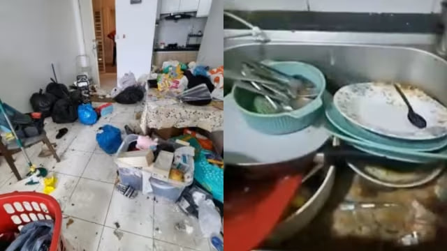 Bước vào trong, bà nhìn thấy căn hộ ở trong tình trạng rất tệ: quần áo nằm rải rác khắp nơi, chất thải đầy mặt sàn, mùi ẩm mốc khó chịu bốc lên, đồ đạc gần như không còn nguyên vẹn...