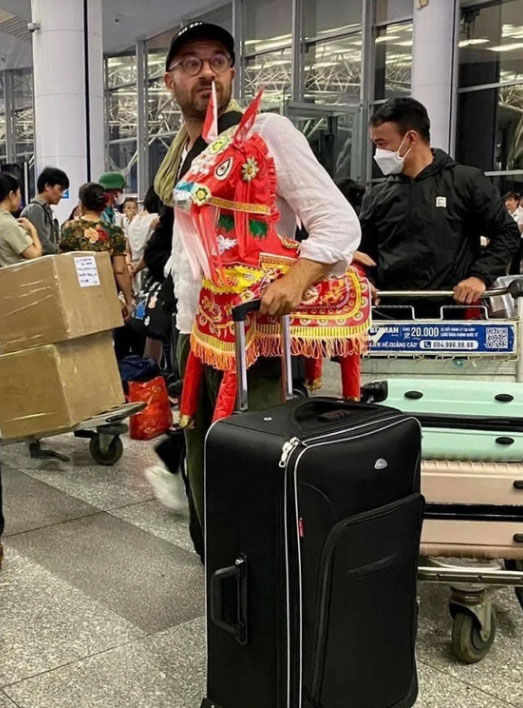 Trước đó, hình ảnh người đàn ông ngoại quốc tên Arnaud Zein El Din cầm con ngựa hàng mã đứng ở sân bay cũng khiến cư dân mạng được phen cười ra nước mắt. Arnaud mua con ngựa hàng mã về làm quà song chú ngựa lại không được lên máy bay. Sau đó không lâu, một người bạn Việt Nam đã gửi con ngựa này sang tận nước Pháp cho Arnaud khiến anh vô cùng bất ngờ và xúc động.