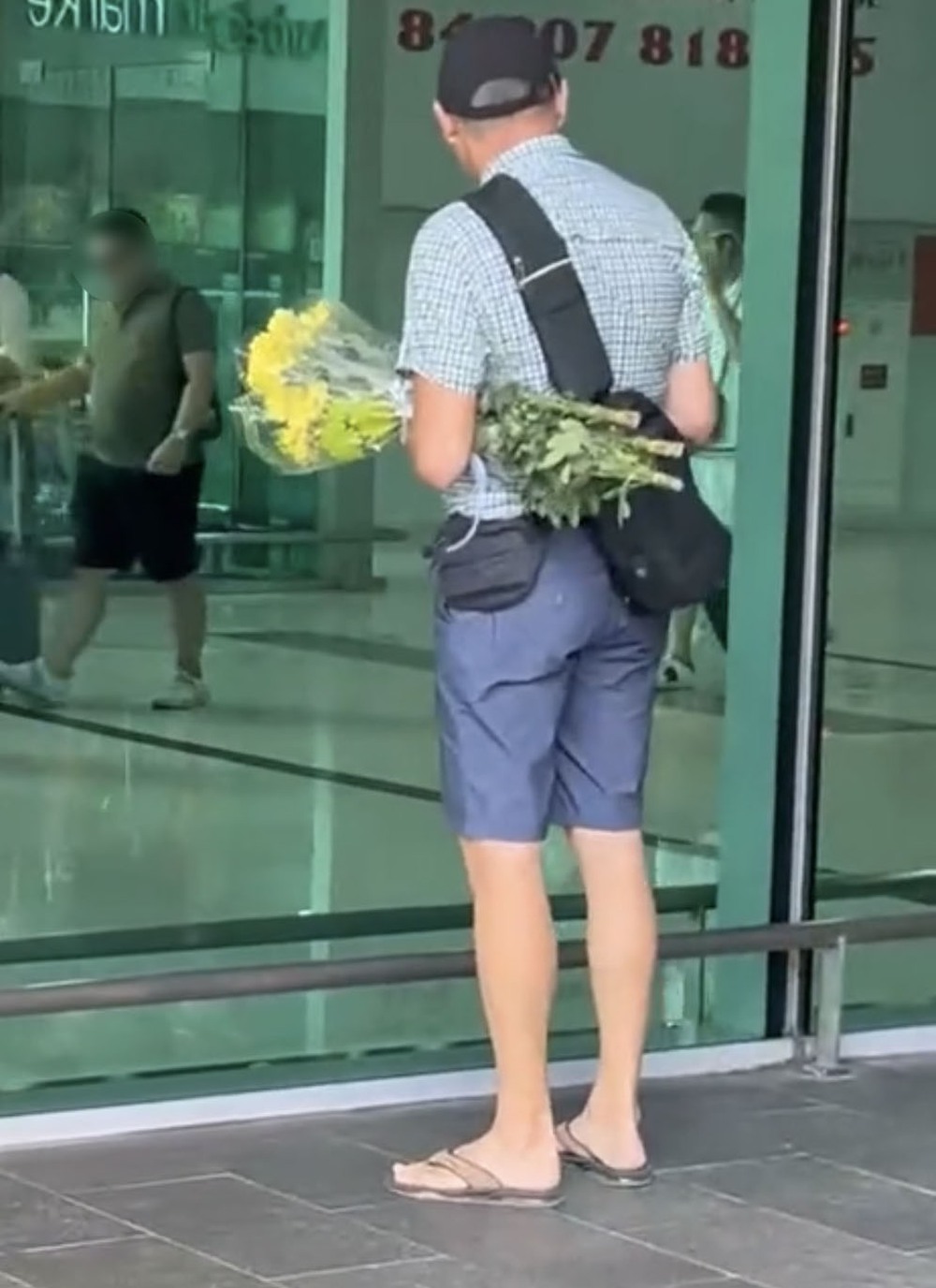 Hôm 5/11, khi đang chờ khách ở sảnh nội địa thì anh Quân gặp người đàn ông nói trên. Thấy kỳ lạ và buồn cười vì bó hoa mà anh Tây đang cầm trên tay nên anh Quân quay clip và đăng lên mạng xã hội. Nam tài xế không ngờ những hình ảnh này lại có sức lan tỏa mạnh mẽ đến vậy.
