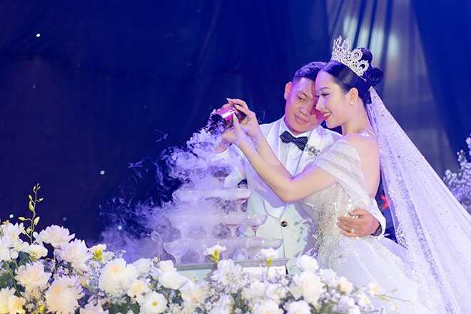 Ngoài ra, không gian tiệc cưới được trang trí tỉ mỉ, hoành tráng với lượng khách mời lên tới nghìn người. Ước tính tổng chi phí rạp cưới lên tới vài trăm triệu.