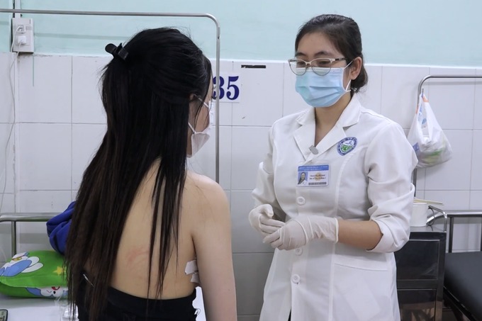 Cô gái đến Bệnh viện Da liễu TP.HCM khám trong tình trạng 2 bên ngực sưng to, đỏ, có mủ. Thạc sĩ, bác sĩ Lê Thảo Hiền, Khoa Thẩm mỹ da đã thăm khám và ghi nhận vùng ngực phải của bệnh nhân bị phù nề, hồng ban, có khối áp xe lớn, ấn đau. Vùng ngực trái cũng có khối kích thước tương tự. Kết quả siêu âm cho thấy hình ảnh chất làm đầy rải rác trong mô mềm, có ổ áp xe lớn.