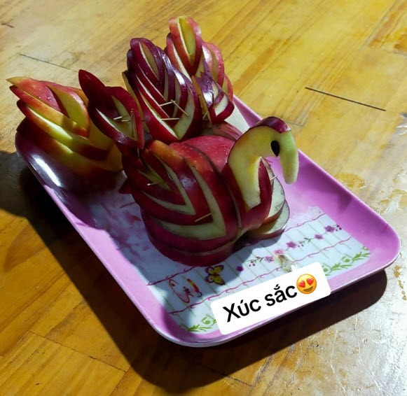 Kinh nghiệm của mình là đừng làm bằng quả táo nha, làm bằng quả táo hôm trước thì đẹp nhưng hôm sau mang tới lớp thì xám xì đen xịt rồi.