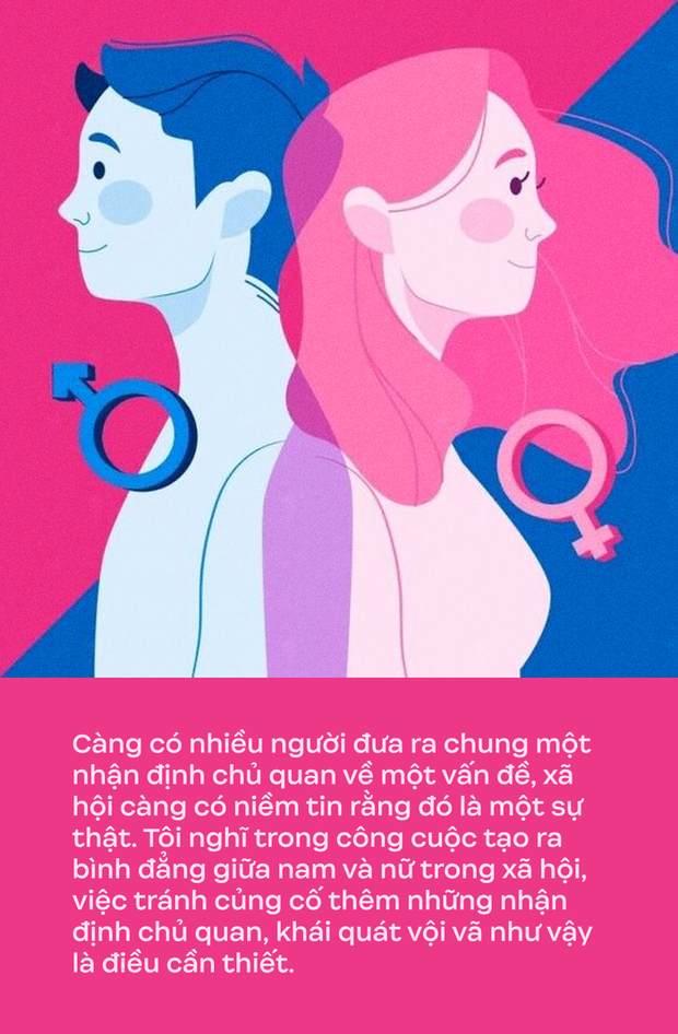 Khi một người nam giới lên tiếng với những câu như “Anh cho rằng con gái nên kín đáo một chút, nửa kín nửa hở trong một khuôn khổ vừa phải thì sẽ quyến rũ hơn”, họ đã có cho mình một “khung định hình" lên cách người bạn gái, vợ mình nên ăn mặc như nào. Không ít câu chuyện bạo lực gia đình đã nảy sinh vì những vấn đề tưởng chừng như nhỏ nhặt như vậy. Ở chiều ngược lại, có khi nào những tiêu chuẩn của phụ nữ dẫn đến bạo lực gia đình hay những rào cản cho nam giới không? Tôi ít khi được nghe những câu chuyện như vậy.