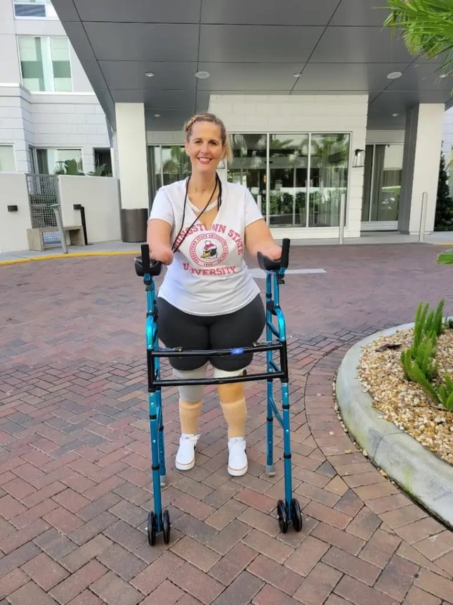 Hai tuần sau, bà Fox bị cắt cụt dưới khuỷu tay, mặc dù tay vẫn có thể cử động được, nhưng tay ngắn hơn rất nhiều so với những người khác.