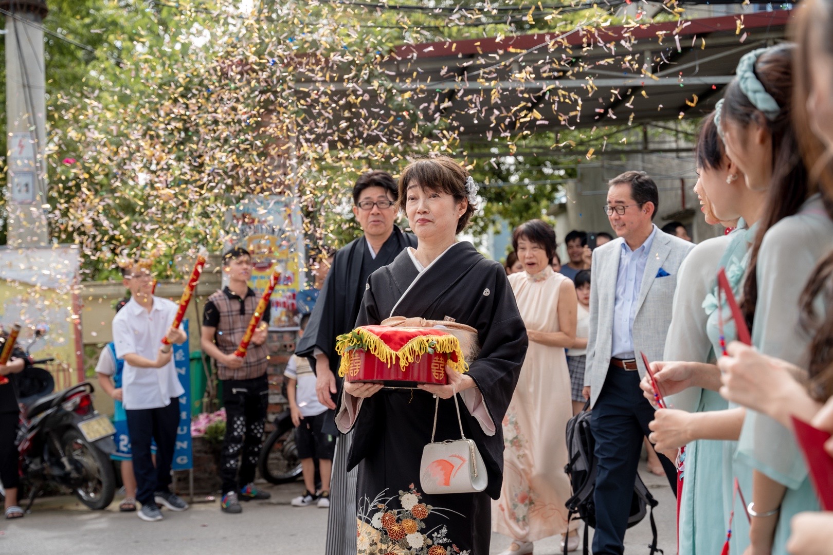 Cô dâu Minh Tâm cho biết, đám cưới của cô mang văn hoá của hai dân tộc cho nên điều đặc biệt chính là trang phục. Cha mẹ và anh chị chồng Tâm chuẩn bị những bộ kimono cực dày trong thời tiết 34 độ tại Việt Nam.