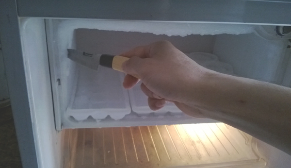 2. Dùng vật sắc nhọn để cạy đá trong tủ