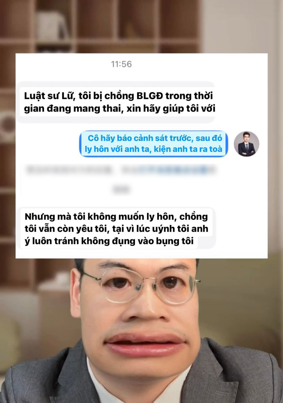 "- Luật sư Lữ, tôi bị chồng bạo lực gia đình trong thời gian mang thai, xin hãy giúp tôi với!