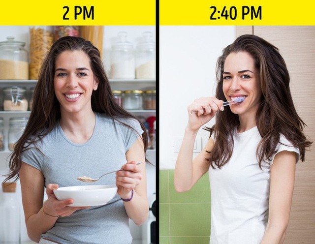 Các nha sĩ khuyên bạn nên đánh răng ít nhất 30-40 phút sau bữa ăn.