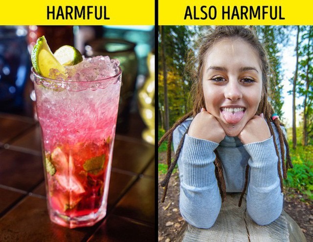 Nếu bạn bắt mình luôn nhai đá (hoặc ăn nhiều hạt), bạn có thể làm hỏng nướu răng , men răng, thậm chí làm vỡ răng. Chất trám trên bề mặt răng của bạn cũng có nguy cơ như vậy. Điều tương tự cũng xảy ra khi bạn xuyên lưỡi bởi có một miếng kim loại trong lưỡi của bạn là một nguồn có thể gây tổn thương cơ học cho răng nếu không may chúng va đập vào răng hoặc là nếu bạn cắn quá mạnh vào chiếc khuyên. Không những thế, xỏ khuyên lưỡi còn có thể khiến lưỡi bị sưng hoặc tạo cơ hội cho vi khuẩn sinh sôi, dẫn đến nhiễm trùng.