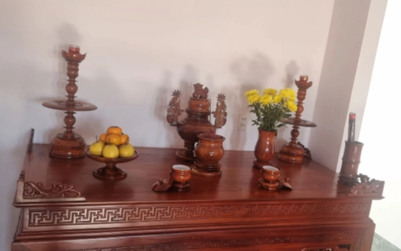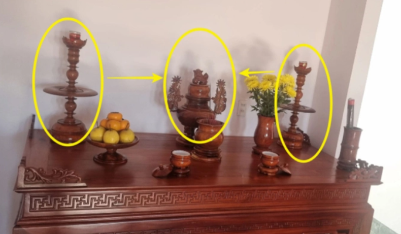 Chẳng hạn, như bàn thờ được bài trí ở phía trên, chưa nói đến việc thiếu nhiều vật phẩm trong bộ đồ thờ cúng cơ bản, vị trí sắp xếp không đúng mà ngay từ đầu chất liệu toàn bộ bằng gỗ đã tạo nên sự lạnh lẽo, xa cách và không tụ khí.
