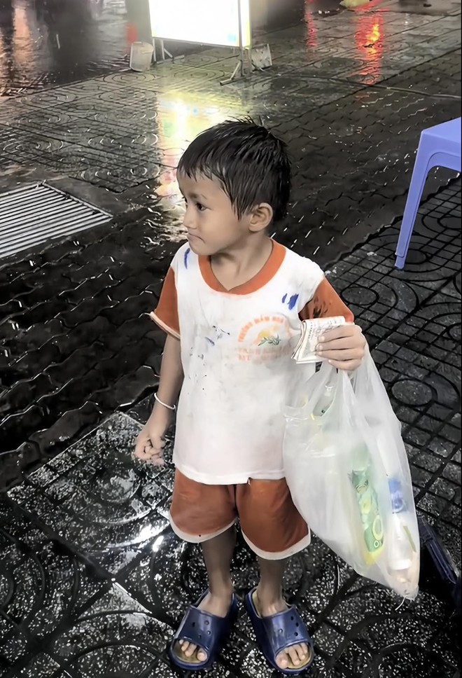 "Lúc qua thì thấy bé cầm sẵn tiền lẻ, bà ngồi bên có nói là nó thèm cơm, đang định qua mua nhưng mà chỉ có tờ 1 nghìn, 2 nghìn, tiền cũng bị rách nữa, sợ qua chủ quán không chịu bán.