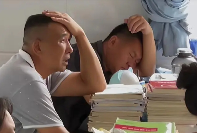 Tuy nhiên dù là tâm trạng gì thì hiếm ai rơi vào hoàn cảnh đặc biệt như ông bố ở Trung Quốc dưới đây. Trong một buổi họp phụ huynh cho con, anh này đã... ngủ gật và bị chụp lại hình ảnh. Lúc thì ông bố này nhắm nghiền mắt, ngủ gà ngủ gật; lúc lại chống tay lên cằm ngủ đầy mơ màng. Đến lúc không chịu được nữa, ông bố này đã gục hẳn xuống bàn, lấy tay ôm đầu ngủ!