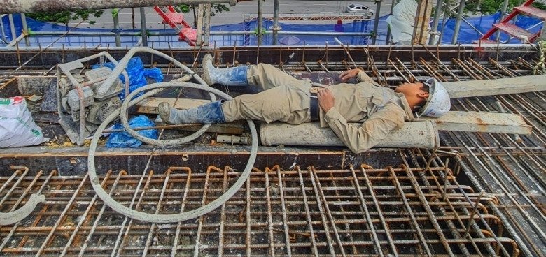 Còn ở công trường làm gì có những thứ ấy. Trưa nằm ghé lưng giữa công trường, nằm được ở đâu thì nằm, có khi chui vào ống cống, có khi nằm ngay cạnh đống gạch. Tối có chỗ nghỉ cho công nhân, nhưng là những sạp gỗ cứng đơ. Trời đông lạnh chỉ có mỗi chiếc ấm siêu tốc bé tí teo cắm chút nước nóng để tắm vội. Nhưng sau một thời gian dài tôi cũng quen dần.