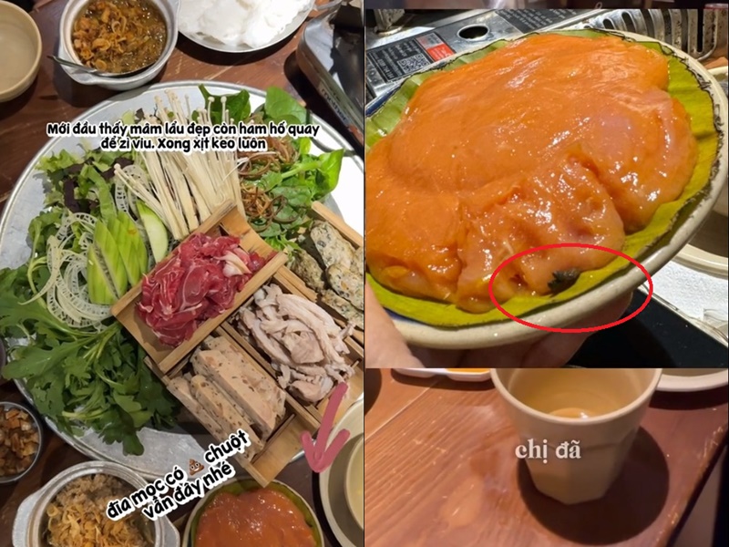 Một nồi lẩu riêu cua hấp dẫn với các loại đồ nhúng được bày biện ngay trước mắt, tuy nhiên khi nhìn sang đĩa mọc thì cả nhóm phát hiện ra một "vật thể lạ" dính ngay trên đĩa. Soi cận cảnh thì ai cũng tá hỏa, "vật thể lạ" ấy chính là "chất thải của chuột" đang nằm ngay ngắn trên đĩa mọc còn nguyên.