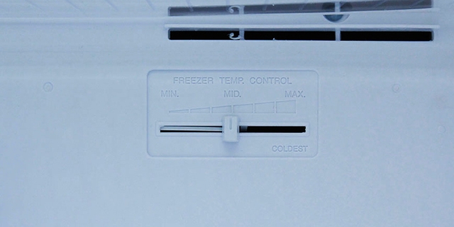 Bên cạnh nút dạng núm vặn, nhiều loại tủ lạnh được trang bị nút điều chỉnh nhiệt độ dạng thanh trượt. Chúng phổ biến hơn ở ngăn đá và có tác dụng điều chỉnh lượng gió. Trên thanh trượt này cũng được quy định 3 mức là thấp (MIN) - trung bình (MID) - cao (MAX). Bởi vậy người dùng chỉ cần trượt thay trượt để vị trí với ký hiệu tương ứng để điều chỉnh độ mát của ngăn đông đá.