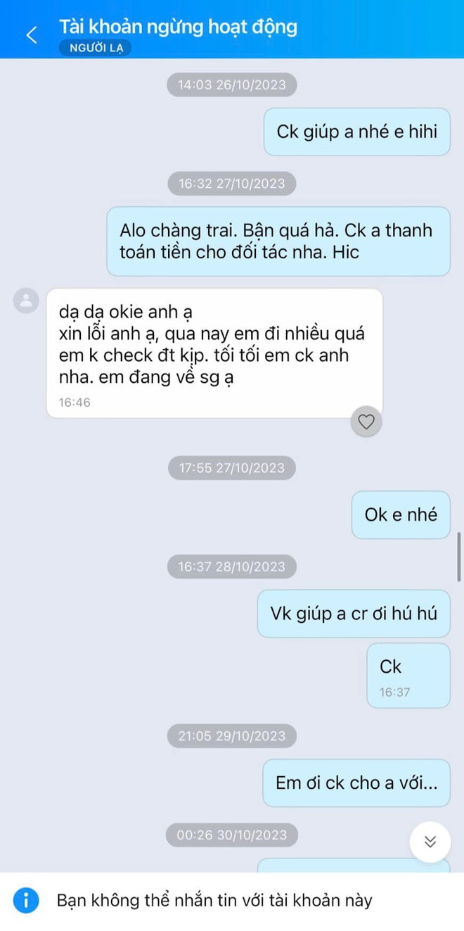 Sau khi đám cưới diễn ra, bên đơn vị nhắn tin báo giá, chú rể rất vui vẻ hẹn chiều tối về sẽ chuyển khoản luôn, nhưng đã 6 tháng trôi qua vẫn "mất hút".