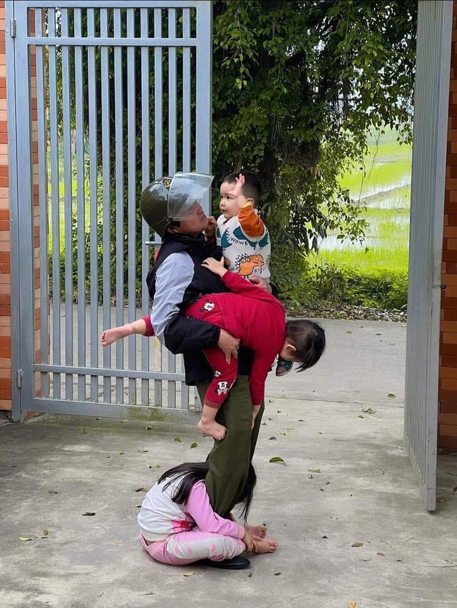Nhiều chị em tâm sự hình ảnh này thật sự rất đáng yêu, dễ thương và cũng rất xúc động. Các con hẳn không muốn xa ông, bé nào cũng bám lấy ông thật chặt. Có lẽ tuổi thơ của rất nhiều ông bố, bà mẹ đều đã từng như thế.