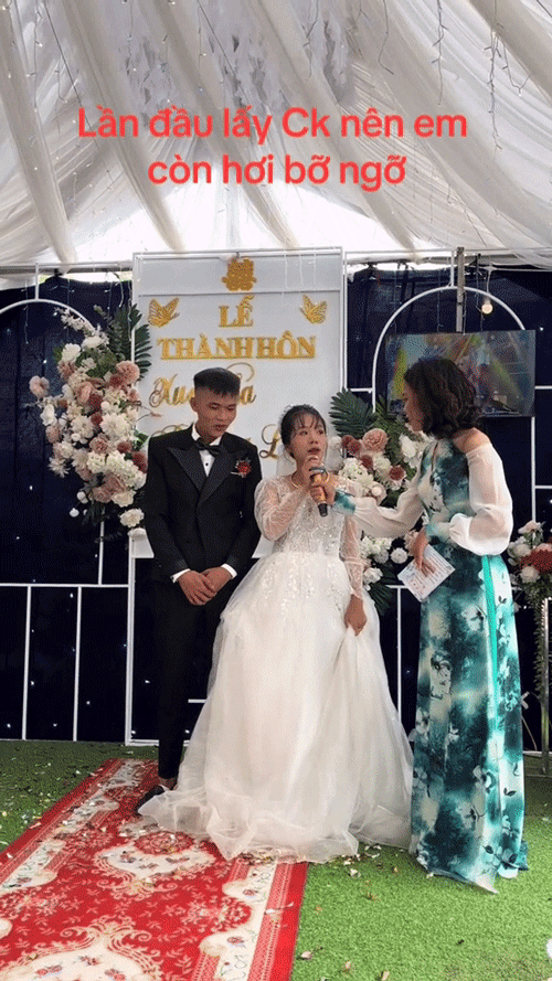 Đáp lại, cô dâu nói: "Em bị lừa ạ". Ngay khi cô dâu vừa dứt lời, cả hôn trường liền bật cười. Chú rể đứng bên cạnh cũng khá bất ngờ với câu trả lời của cô dâu.