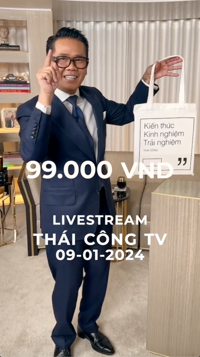 Được biết, trong phiên livestream vừa qua của Thái Công, NTK đã tung ra sản phẩm có giá 99k, là một chiếc túi có in câu "khẩu hiệu" được NTK liên tục gửi gắm những ngày qua là "kiến thức, kinh nghiệm, trải nghiệm". Đặc biệt, chiếc túi này còn được Thái Công trực tiếp ký tên, được xem như "bản gốc".