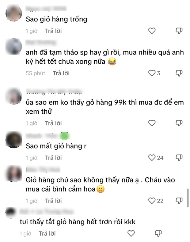 Tuy nhiên, chưa đầy 1 ngày sau phiên livestream, nhiều người vào mua hàng đã phát hiện ra giỏ hàng trên TikTok của Thái Công không còn một sản phẩm nào.