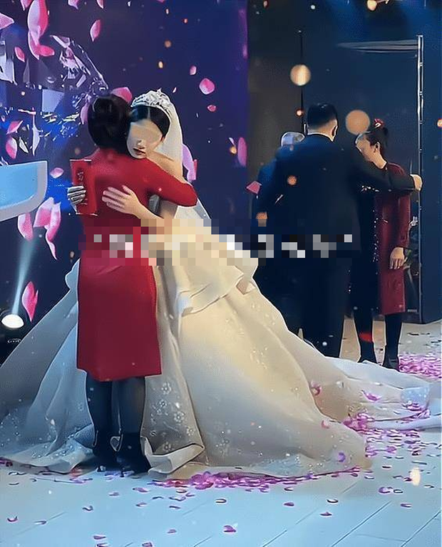 Quan viên hai họ dưới sân khấu lặng yên như tờ, nhưng mẹ chồng đứng bên cạnh đã sa sầm mặt. Hóa ra bà không biết trên người con dâu lại có một “bí mật” lớn như vậy. Người dẫn chương trình lập tức hiểu chuyện gì đang xảy ra nên nhanh chóng lên tiếng điều hướng hôn lễ, anh bắt đầu giới thiệu về hành trình yêu đương của cô dâu chú rể với khách mời.
