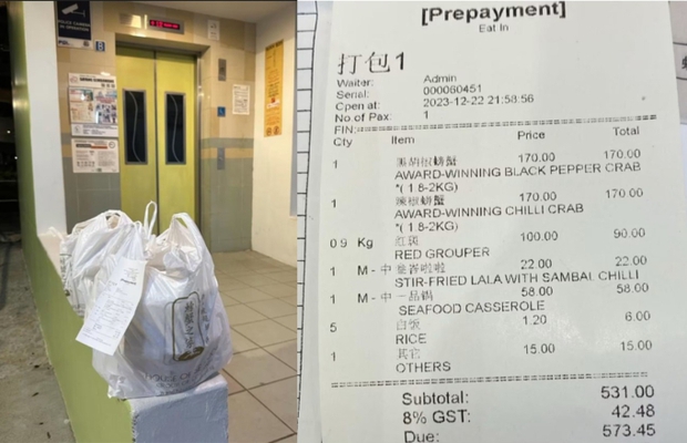 Theo thông tin trên kênh truyền hình 8World ngày 23/12, tổng trị giá hóa đơn đặt hàng này lên tới 573,45 SGD và người đặt đồ ăn tuyên bố rằng anh ta không thể sử dụng phương thức thanh toán PayNow và chỉ có thể thanh toán bằng tiền mặt.