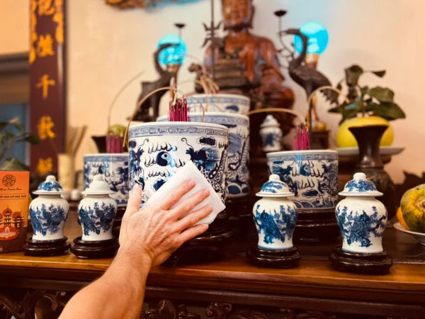 Lưu ý: Tuyệt đối không lau vật dụng trực tiếp trên bàn thờ.