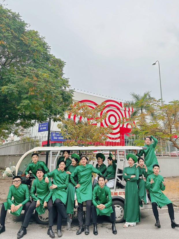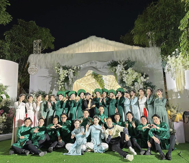 Chia sẻ với chúng tôi, chị Thảo Quỳnh - quản lý nhóm bưng tráp thuê cho biết, đám hỏi của cô dâu Hà Vy được tổ chức với khoảng 11 tráp lễ, có tổng cộng 22 thanh niên trai gái bưng mâm. Ngoài ra nhà gái còn thuê thêm một đội gồm 20 nữ PG và 10 nam PB hỗ trợ đón khách.