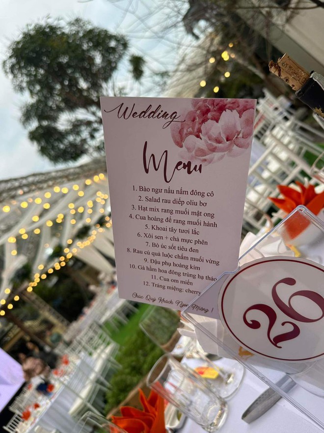 Cũng theo chia sẻ từ chị Quỳnh, rạp cưới cũng được trang trí với số lượng hoa tươi "khủng". Chiều dài rạp khoảng 120 mét, rộng hơn 1.000 mét vuông, có giá trị tổng khoảng hơn 2 tỷ.