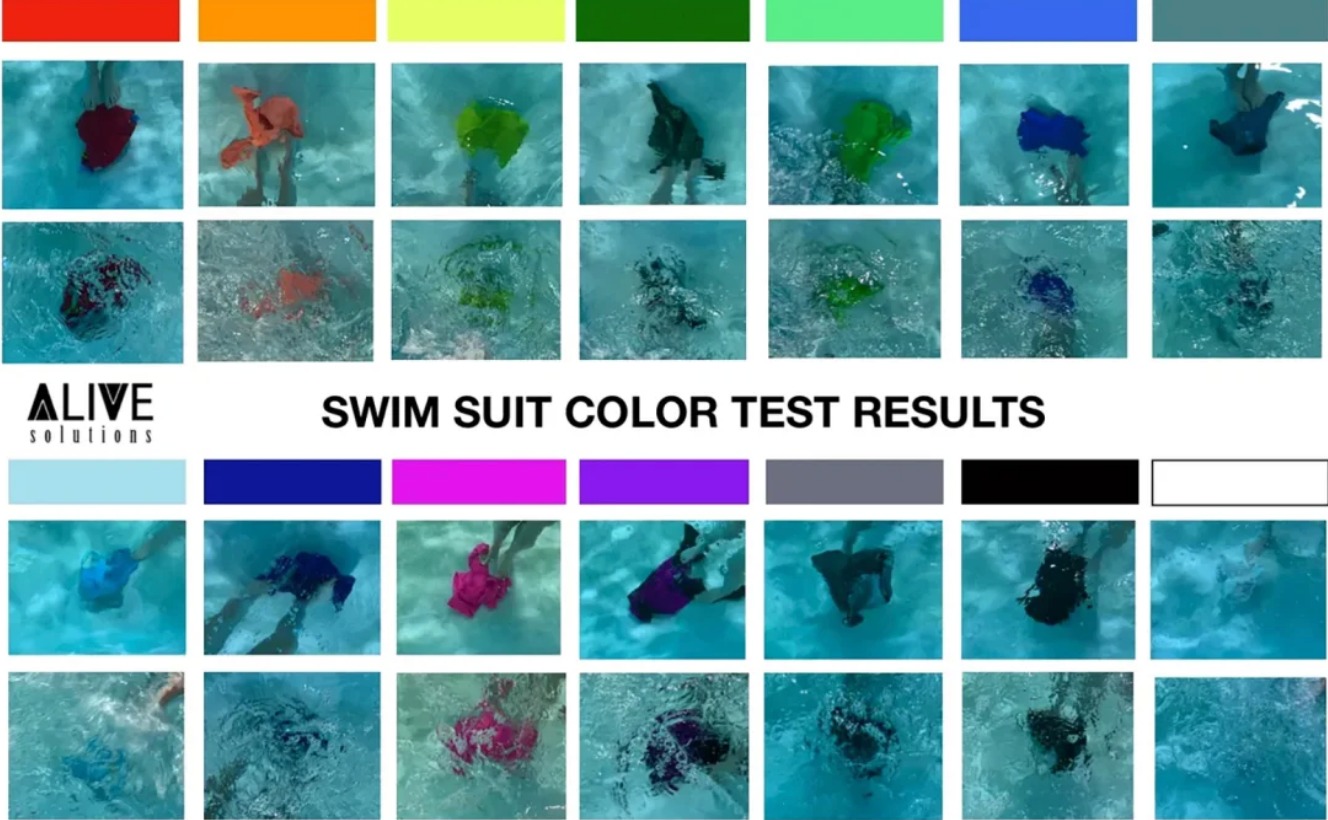 Theo tạp chí Today's Parent (Canada), Công ty ALIVE Solutions đã tiến hành một cuộc nghiên cứu để xem màu sắc ảnh hưởng thế nào đến khả năng được nhìn thấy rõ của trẻ em trong bộ quần áo bơi ở môi trường nước. Công ty đã mang những bộ quần áo bơi có màu sắc khác nhau và cho vào hồ tự nhiên, hồ bơi để kiểm tra xem màu sắc nào sẽ dễ được nhìn thấy nhất ở dưới mặt nước. Vì thế trong trường hợp trẻ con không may bị đuối nước, người lớn ở trên bờ có thể dễ dàng nhận ra nhanh chóng.
