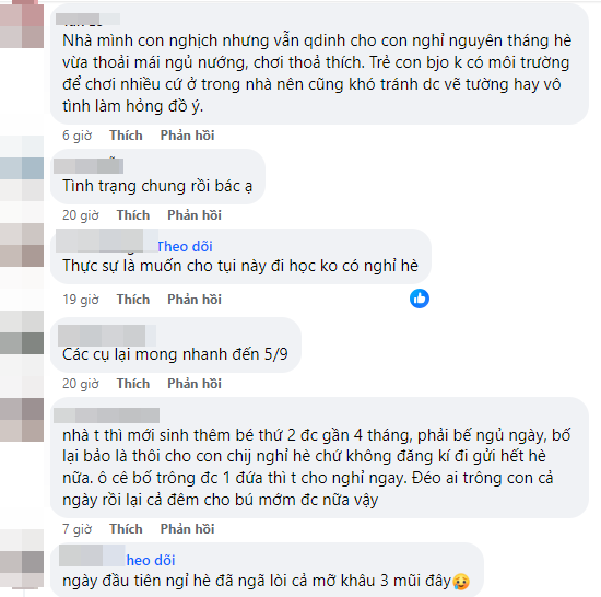 07/06/2024 01:00Mới nghỉ hè có 6 ngày mà nhiều mẹ bỉm muốn trầm cảm vì trông con: Nhà hỏng tivi, nhà phải sơn lại tường