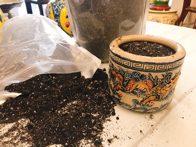 Để tro và chân hương cũ ra một mảnh vải. Sau đó, bỏ tro hương mới vào bát hương và ấn thật chặt tro để khi cắm chân nhang không bị ngả nghiêng.