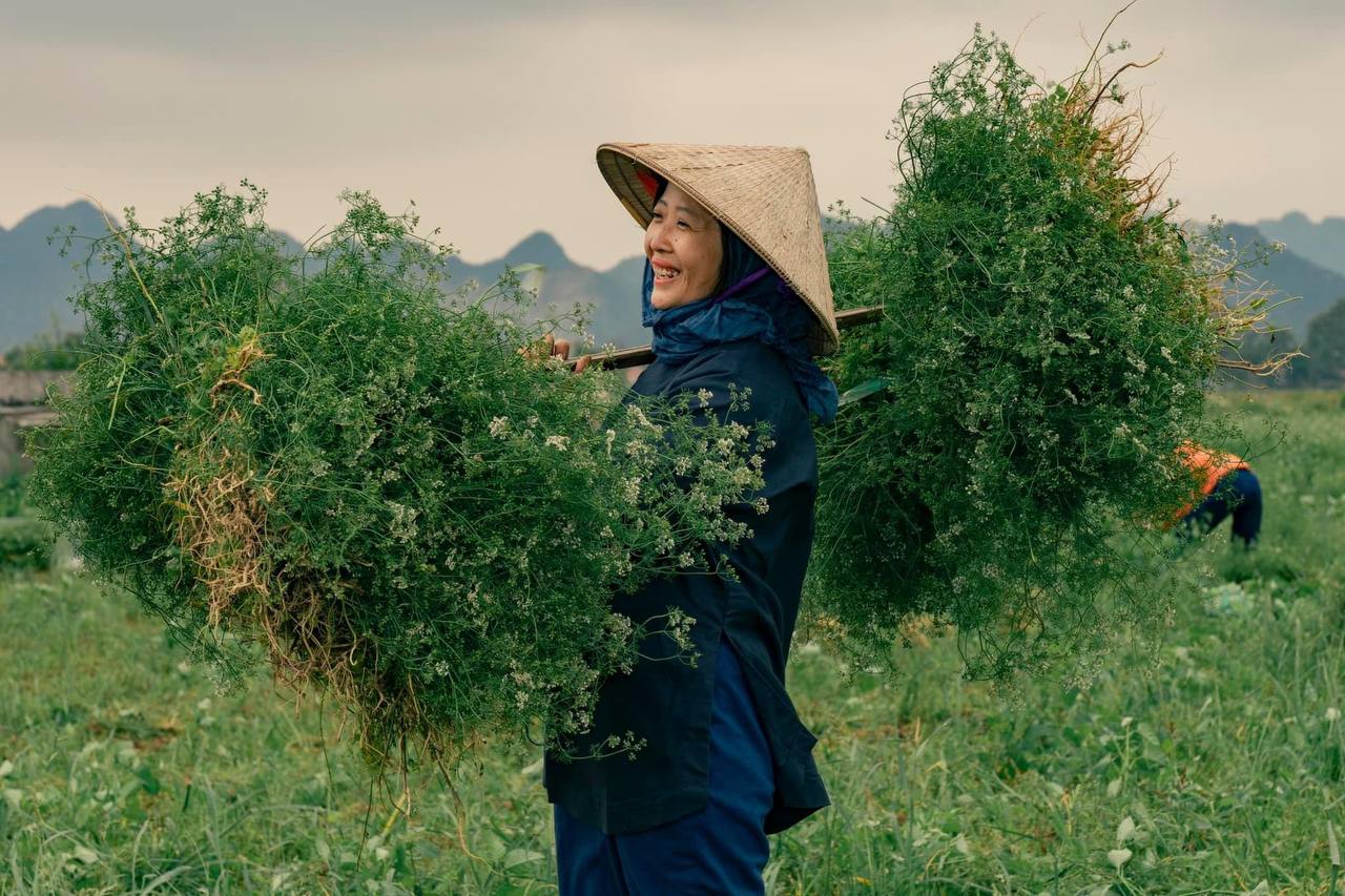 Không xa hoa cũng chẳng màu mè, những bó mùi già theo chân người bán rong ruổi khắp phố phường những ngày cuối năm, tựa như mang mùi vị của Tết vung vẩy đến từng góc nhỏ. Những cánh hoa đào phai khoe sắc hồng, từng bó lay ơn rực đỏ trong phiên chợ, những mai những quất căng mình đón gió xuân dường như vẫn chưa đủ để người ta ôm vị Tết vào lòng. Phải đến khi tận tay cầm bó mùi, hít hà thứ hương thơm cổ truyền ấy đầy lồng ngực, người ta mới yên tâm đủ đầy vị Tết.