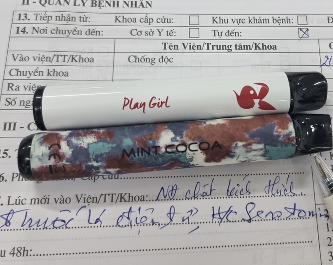 Người nhà bệnh nhân cho biết trước đó, H. làm việc tại TP HCM, thời gian gần đây H. có mua và sử dụng thuốc lá điện tử có tên Ampire Chill với giá hơn 600.000 đồng. Có những ngày H. hút tới 3-4 ống.