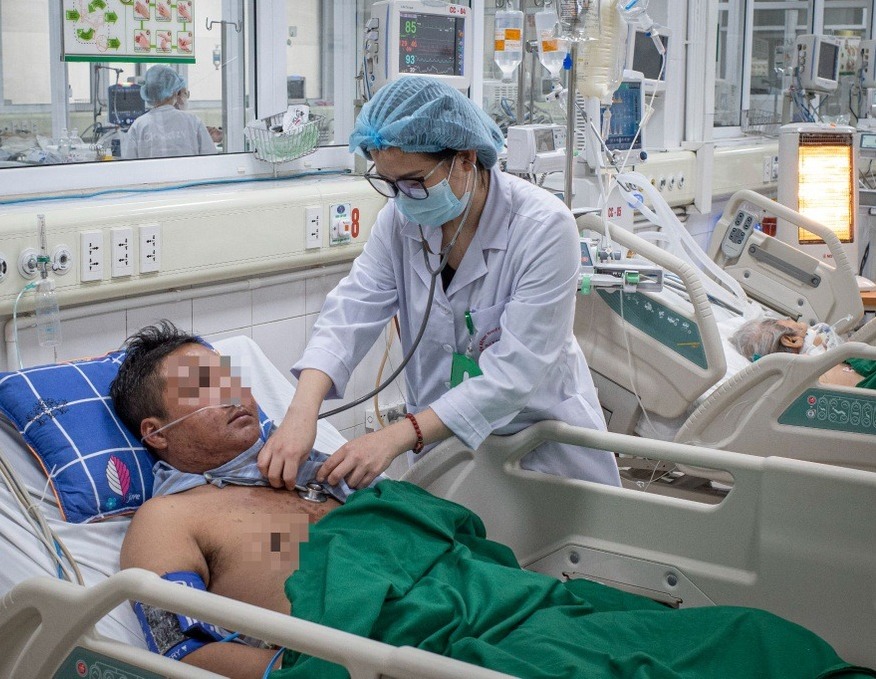 ThS.BS Trần Văn Bắc, Phó trưởng khoa Cấp cứu, Bệnh viện Bệnh Nhiệt đới Trung ương cho biết, tại thời điểm nhập viện, các bác sĩ đã phải can thiệp thở máy không xâm nhập (HFNC) cho bệnh nhân.